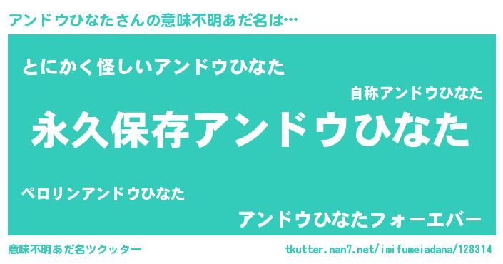 | 女子向けラノベタイトル風あだ名 | 『異世界で失敗しない100のアンドウひなた』 |