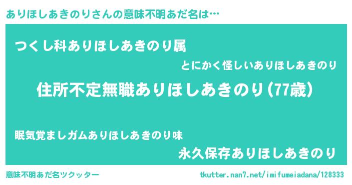 | 胡散臭い通販商品みたいなあだ名 | 『世界中を虜にした世界で10本だけ現存している希少なブランデー…その名も「ありほしあきのり」』 |