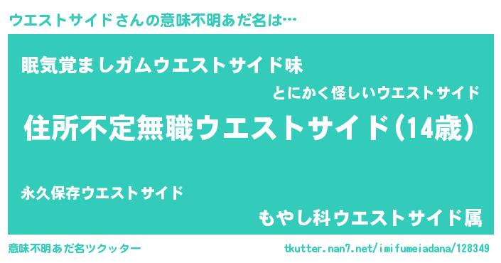 | 女子向けラノベタイトル風あだ名 | 『ウエストサイドが死なない童話 林檎のウエストサイドの診療簿』 |