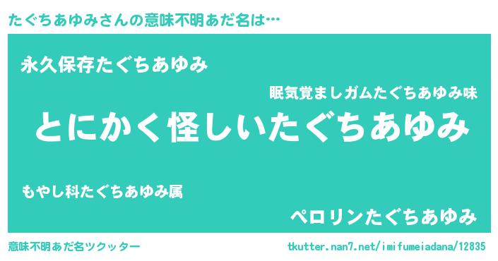 | ヘコむあだ名 | 『たぐっちょ』『たぐちあゆみ(震え声)』 |
