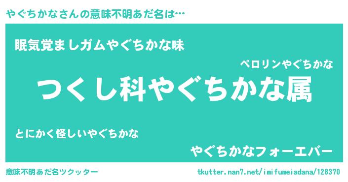 | ヒーロー風カッコイイあだ名 | 『慈愛の使者やぐちかな』『炎刃騎士ヤグ』 |