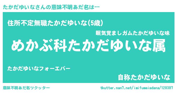 | ヒーロー風カッコイイあだ名 | 『仮面タカダー』『最強戦士タカダユイナ』 |