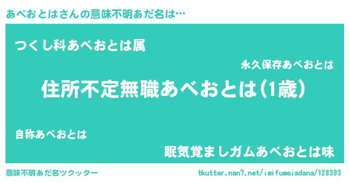| 男性向けラノベタイトル風あだ名 | 『この素晴らしい世界にあべおとはを!』 |
