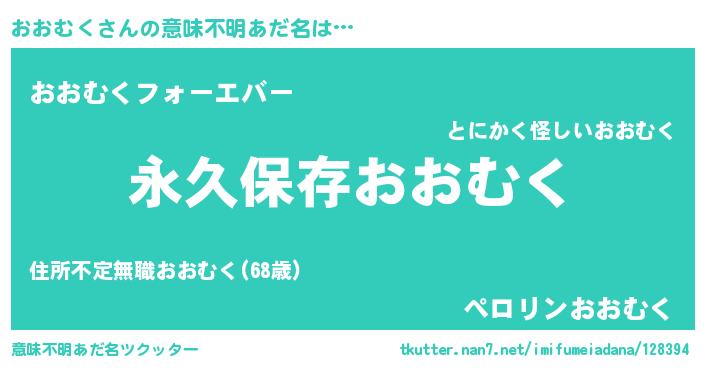 | ヒーロー風カッコイイあだ名 | 『ネオオオムク』『ウルトラおおむくマン』 |