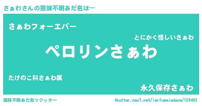 | 男性向けラノベタイトル風あだ名 | 『はたらくさぁわさま!』『さぁわの憂鬱』 |