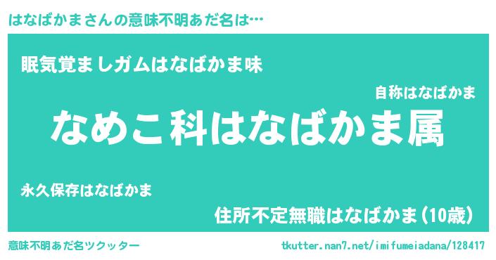| ヘコむあだ名 | 『はなばかま(遠い目)』『はなを』 |
