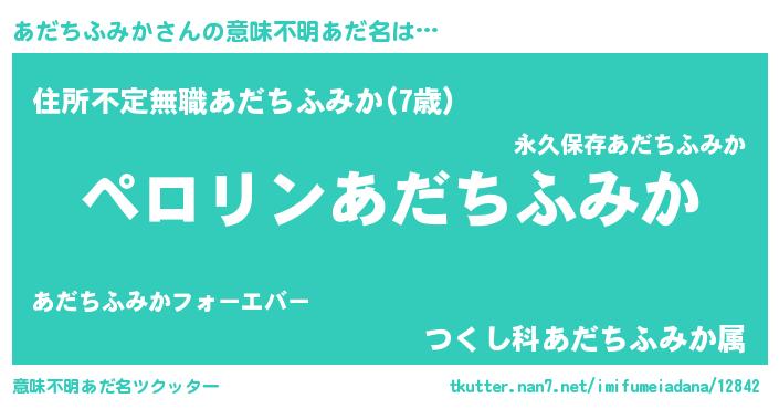 | ヘコむあだ名 | 『あだにー』『あだちふみか(笑)』 |