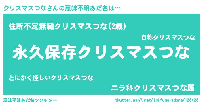 | 女子向けラノベタイトル風あだ名 | 『クリスマスつなの契約王妃』 |