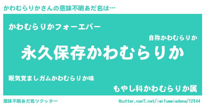 | 男性向けラノベタイトル風あだ名 | 『かわむらりかという概念が存在しない退屈な世界 』 |