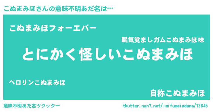 | 女子向けラノベタイトル風あだ名 | 『こぬまみほ様がみてる』 |
