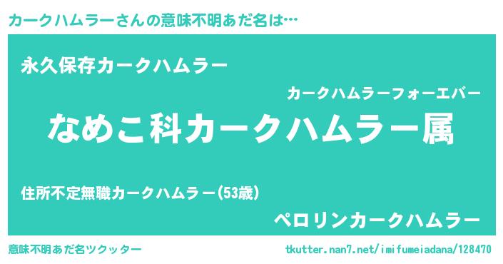 | ヘコむあだ名 | 『カークハムラー(震え声)』『カーにゅー』 |