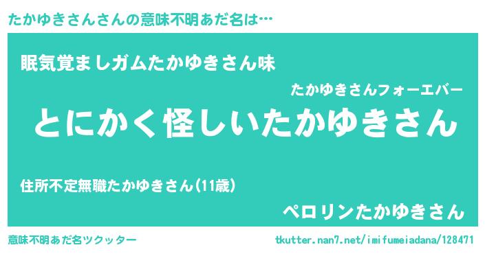| 肩書あだ名 | 『たかゆきさん団長』『たかゆきさん教授』 |