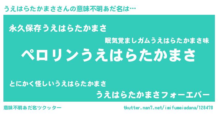 | ヘコむあだ名 | 『うえにー』『うえはらたかまさ(笑)』 |