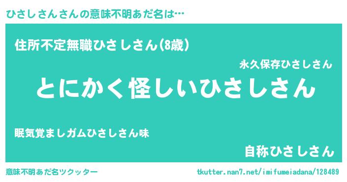 | ポケモン風あだ名 | 『ヒヒサシサン』『ヒサゴンZ』 |