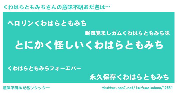 | 胡散臭い通販商品みたいなあだ名 | 『伝統あるペンダント…その名も「くわはらともみち」』 |