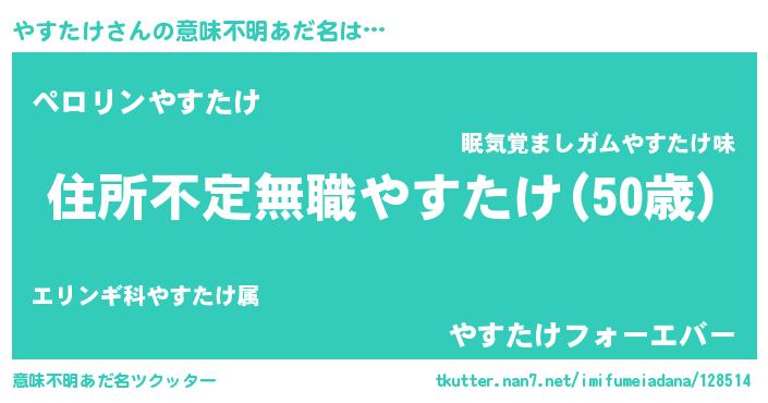| ヒーロー風カッコイイあだ名 | 『仮面ヤスダー』『スーパーヤスタケ』 |