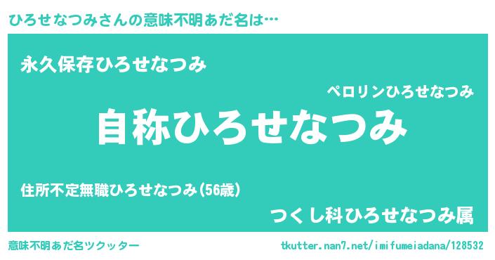 | 女子向けラノベタイトル風あだ名 | 『ひろせなつみなんてお断りですっ。』 |