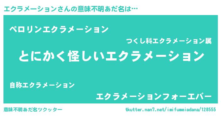 | 男性向けラノベタイトル風あだ名 | 『エクラメーションの嫁は女の子じゃないと思った?』 |