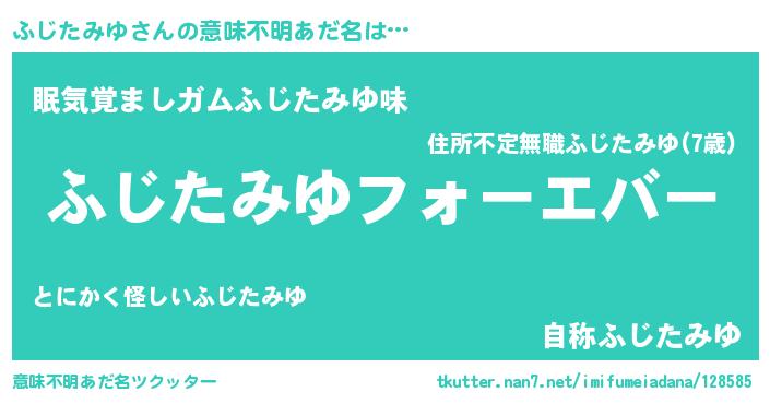 | 男性向けラノベタイトル風あだ名 | 『うちの娘の為ならば、俺はもしかしたらふじたみゆも倒せるかもしれない。』 |