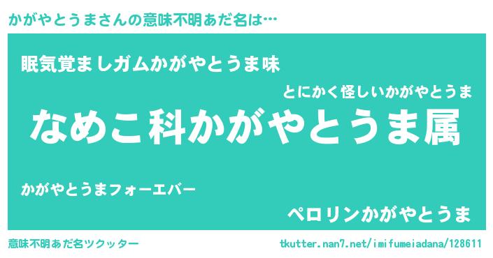 | 胡散臭い通販商品みたいなあだ名 | 『お金では代えられないマグネット磁石…その名も「かがやとうま」』 |