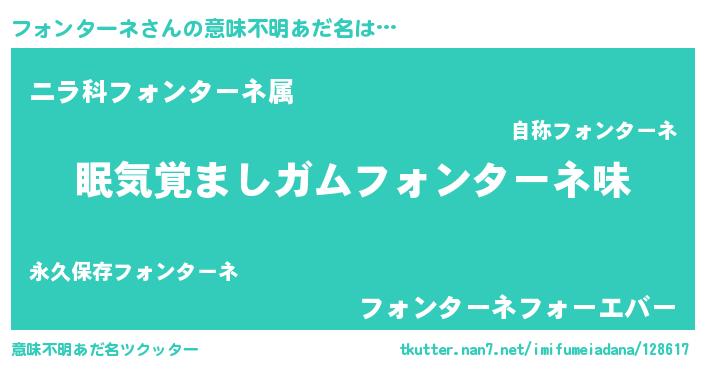 | 男性向けラノベタイトル風あだ名 | 『おまえをオタクにしてやるから、俺をフォンターネにしてくれ! 』 |