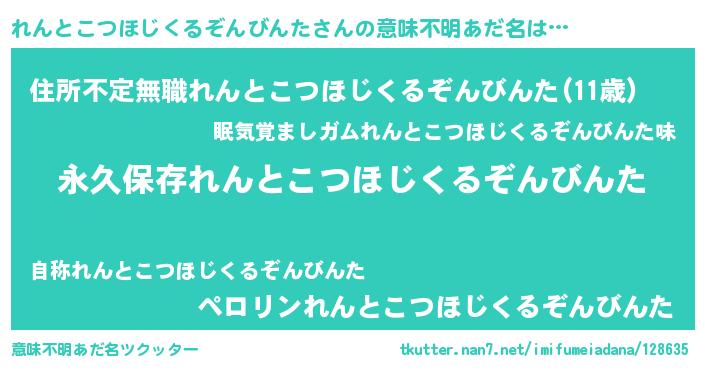 | 男性向けラノベタイトル風あだ名 | 『れんとこつほじくるぞんびんたという概念が存在しない退屈な世界 』 |