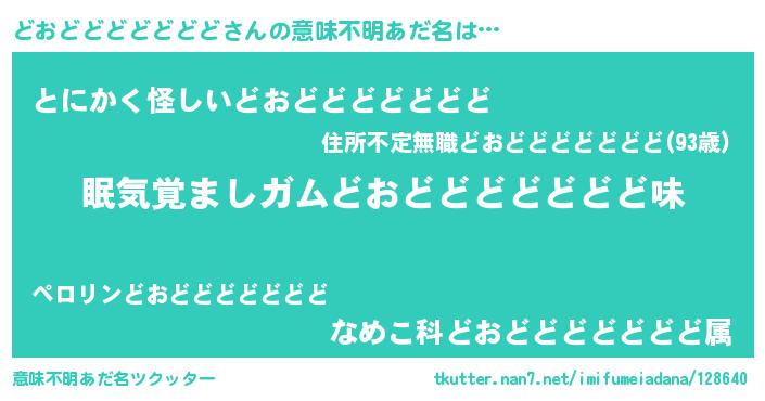 | 女子向けラノベタイトル風あだ名 | 『死神どおどどどどどどどの再婚』 |