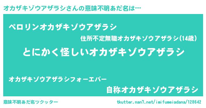 | 女子向けラノベタイトル風あだ名 | 『オカザキゾウアザラシの卵を拾いまして』 |