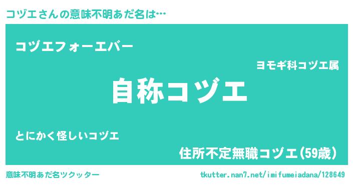 | ファンタジー風あだ名 | 『ゼコヅトゥ』『エターナルコヅエー』 |
