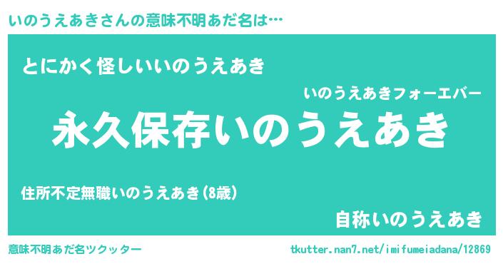 | 男性向けラノベタイトル風あだ名 | 『いのうえあきという概念が存在しない退屈な世界 』 |