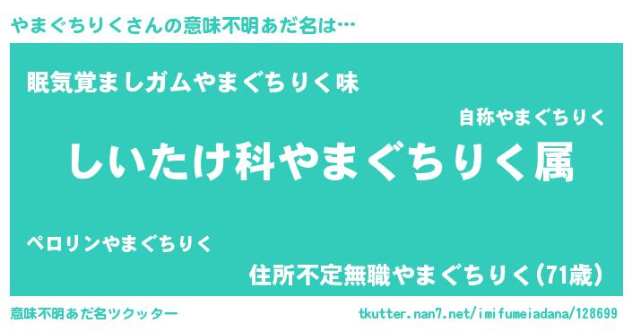 | ヒーロー風カッコイイあだ名 | 『正義の使者やまぐちりく』 |