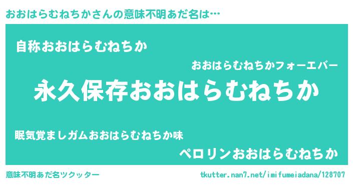 | ヒーロー風カッコイイあだ名 | 『ネオオオハラムネチカ』 |
