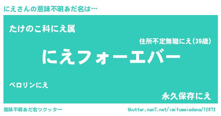 | 自動車の名前っぽいあだ名 | 『ニクア』『フェニーエ』『デミニ』 |