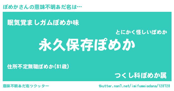 | 胡散臭い通販商品みたいなあだ名 | 『来世でも幸せになれる健康食品…その名も「ぽめか」』 |