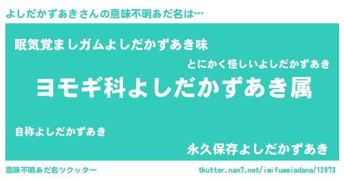 | 男性向けラノベタイトル風あだ名 | 『よしだかずあきに滅ぼされるだけの簡単なお仕事です』 |