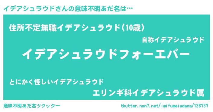 | 欧米人風あだ名 | 『イデアシュラウドクリステル』 |