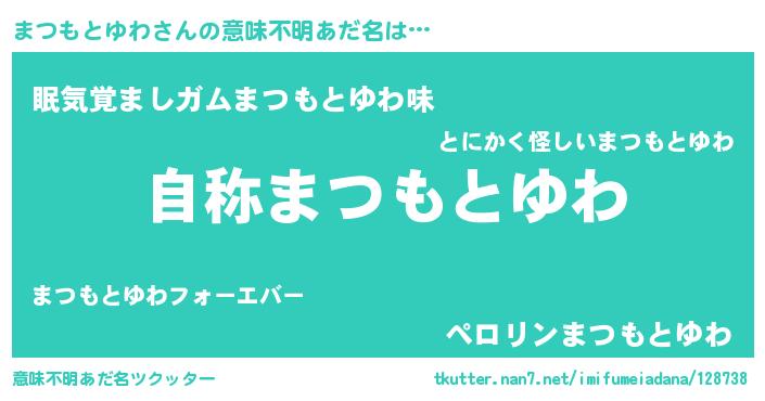 | 男性向けラノベタイトル風あだ名 | 『魔法科高校のまつもとゆわ』 |