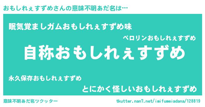 | 男性向けラノベタイトル風あだ名 | 『Re:おもしれぇすずめから始める異世界生活』 |