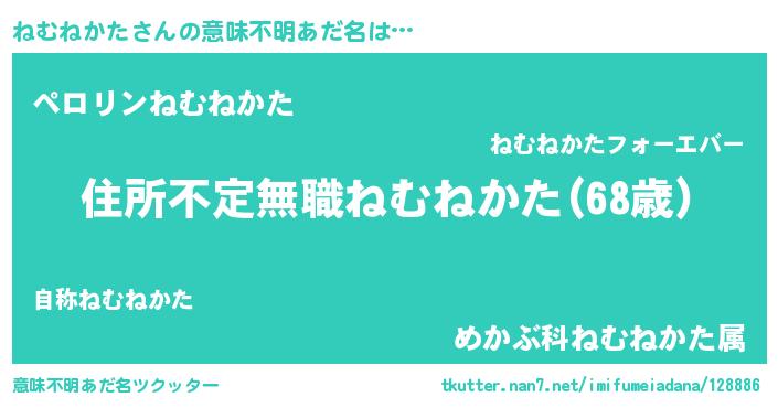 | ヒーロー風カッコイイあだ名 | 『仮面ネムダー』『スーパーネムネカタ』 |