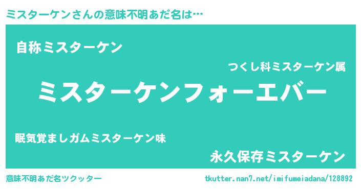 | ファンタジー風あだ名 | 『エターナルミスターケンー』 |