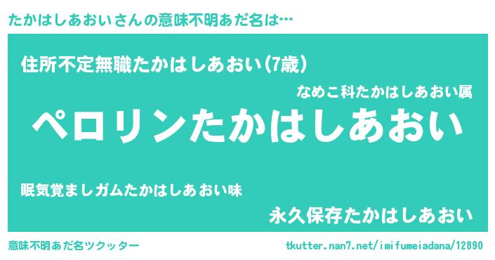 | 胡散臭い通販商品みたいなあだ名 | 『必ず成功するブレスレット…その名も「たかはしあおい」』 |