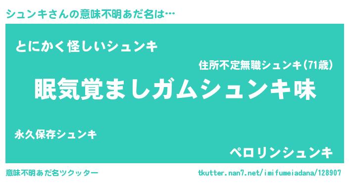 | ヒーロー風カッコイイあだ名 | 『正義の使者シュンキ』『暗黒騎士シュ』 |
