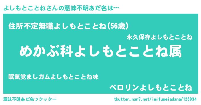 | ヘコむあだ名 | 『よしにゅー』『よしもとことね(爆)』 |