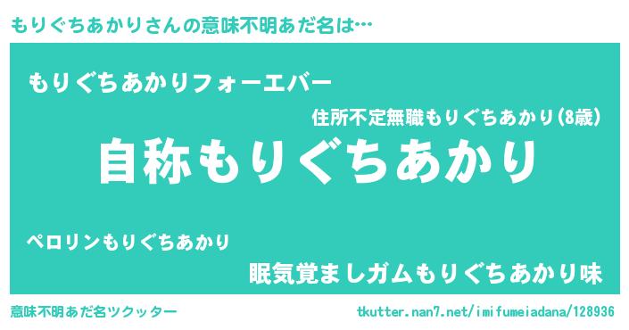 | 男性向けラノベタイトル風あだ名 | 『Re:もりぐちあかりから始める異世界生活』 |