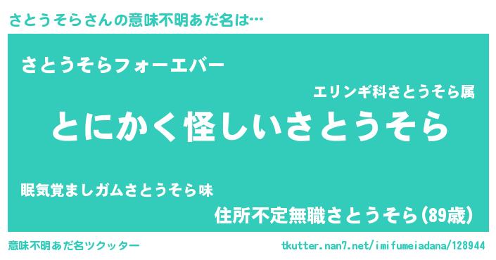 | 女子向けラノベタイトル風あだ名 | 『さとうそらの卵を拾いまして』 |