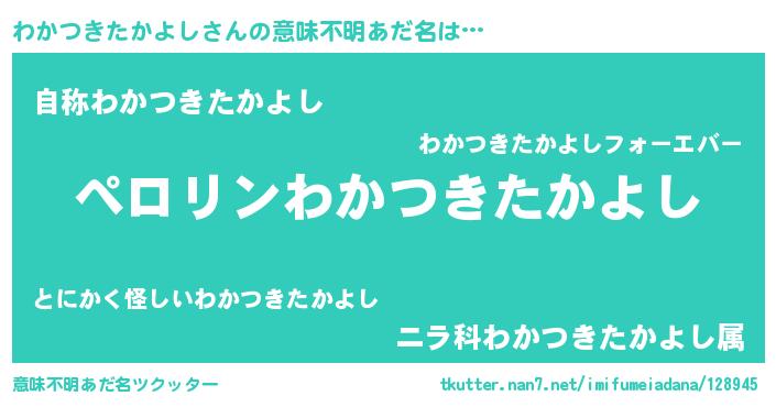 | ヒーロー風カッコイイあだ名 | 『スーパーワカツキタカヨシ』 |