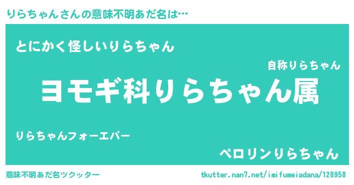 | ポケモン風あだ名 | 『リラキング』『ヒリラチャン』 |