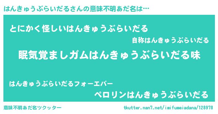 | 欧米人風あだ名 | 『ダニエルはんきゅうぶらいだる』 |