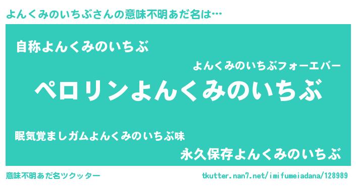 | ヒーロー風カッコイイあだ名 | 『スーパーヨンクミノイチブ』 |