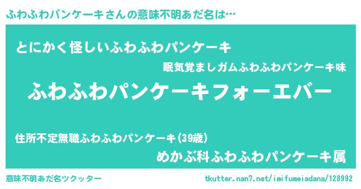 | ファンタジー風あだ名 | 『エターナルフワフワパンケーキー』 |
